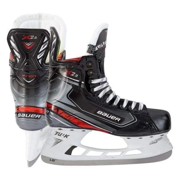 The Vapor X2.9 Skate is built with our new PERFORMFLEX COMFORT AND PERFORMANCE SYSTEM, which delivers step-in comfort, premium performance, enhanced fit, and value. A 3D-Lasted Tech Mesh Quarter, used by 1,000 pro players globally, offers support and thermoformability for optimal performance. A 48oz. Felt tongue with injected metatarsal guard provides advanced level comfort and protection. The skate features AeroFoam Technology, an increased foam thickness that offers maximum comfort and thermoformability. A Hydrophic Microfiber Liner provides premium comfort with a nice soft feel and added moisture management properties. A Form Fit+ footbed hugs your foot and offers additional comfort with memory foam. Comfort Edge padding delivers high-end value and premium comfort in every stride.