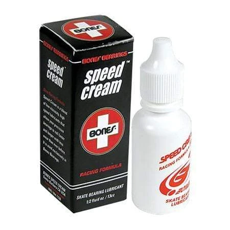 Bones ‘ Speed Cream’ is a high temperature, low viscosity synthetic skate lubricant specially formulated by Bones’ to reduce friction, and provide a durable micro film of lubricant to protect against corrosion. We have found this lubricant to be superior to Teflon™ based lubricants in skate environments. Speed Cream R.F. makes your bearings faster and is very long lasting.