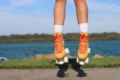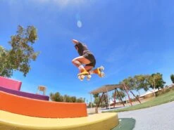 ‘Birak’ pays respects to one of the 6 six seasons on Noongar boodja country where Chitty grew up, and is her birth season. The beginning of Indigenous seasons aren’t dictated by certain days or months, but by the change of weather, flora, and fauna. Birak is the first summer, hot and dry, and is regarded as the season of the young. Young animals leave the nest and start venturing beyond into the world. This playful image evokes the feeling of skating – embracing the season of the young, freedom, and remembering to be young at heart.