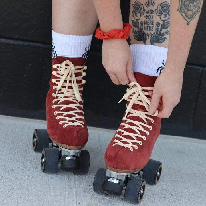 The Chuffed Wanderer is for the roller skater who wants to roll wherever life takes them. From the street to the rink to the skatepark or the boardwalk. These skates feature a suede upper and padded lining for ultimate comfort and minimal break in period. The retro lining is inspired by the endless possibilities and curves of skate lines, and all the places you will wander on your skates. The Wanderer comes with an aluminium alloy plate, an adjustable toe stop, and 82a polyurethane wheels.