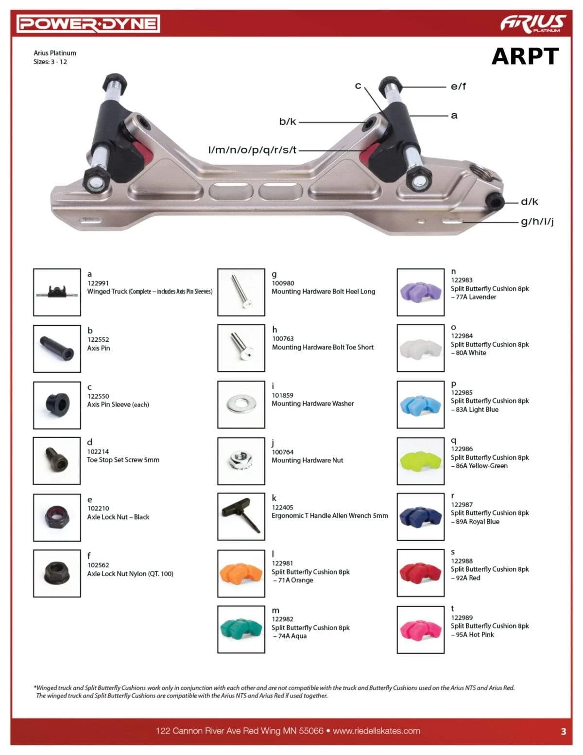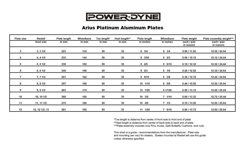 The PowerDyne Arius Platinum takes the roller skate plate to the next level. The Arius Platinum features the same revolutionary design as the original Arius with upgrades in key areas that improve performance and ease-of-use. To start, the toe stop bolt is now found at the very front of the Arius Platinum, instead of behind the toe stop. This provides greater clamping power for secure stops, starts and other toe stop maneuvers. The trucks of the Arius Platinum also receive a significant update, with a “winged” truck body that securely holds the Split Butterfly Cushions in place with no need for any other stabilization or adjustment hardware. Finished in a brilliant platinum gold color, the Arius Platinum is lighter, stronger, more stable, more powerful, more maneuverable, more durable and more efficient than any other plate available today. Each Arius Platinum set comes with 4 sets of Split Butterfly Cushions so you can tailor your ride for your exact needs.