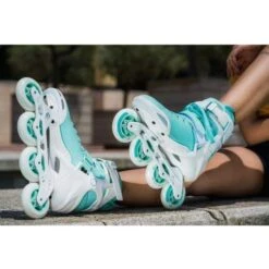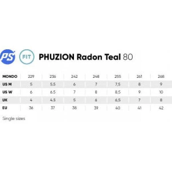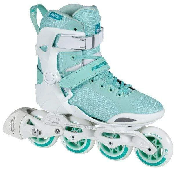 The Powerslide Phuzion Radon Teal 80 skate is the pinnacle of comfortable performance. Constructed using a glass-fiber reinforced strong and stiff outer shell and cuff and combined with the TRINITY mounting system it provides an amazingly stable platform that improves power transfer, reduces vibrations, and creates a super low center of gravity for more and better balance. The new Powerknit upper with TPU welded reinforcements ensures a snug and supportive fit. Powerslide’s Elite cast aluminum 4×80 – 243mm frame is lightweight and stiff. A super comfortable fixed liner with dual density foams and an additional heel lock keeps you skating all day long. This skate is agile, nicely rolling with its 4x80mm Powerslide Infinity and Wicked ABEC 5 bearings. Moreover, it includes the Powerslide HABS braking system. In the mood for Phuzion.
