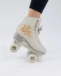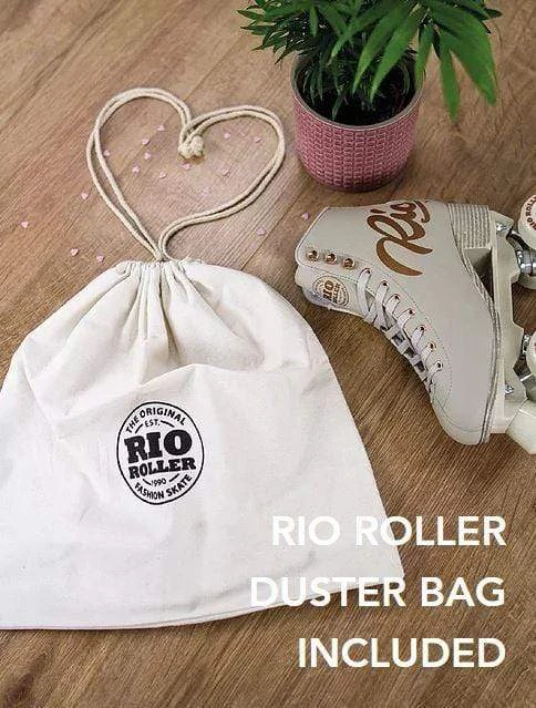 We’ve taken the popular script design and sprinkled a touch of elegance by introducing a beautiful rose gold effect. Taking inspiration from the traditional figure skates, we kept the color pallet classic with black and cream, which really makes the rose gold pop! These skates make us super excited to hit the roller disco and dance around with retro moves!