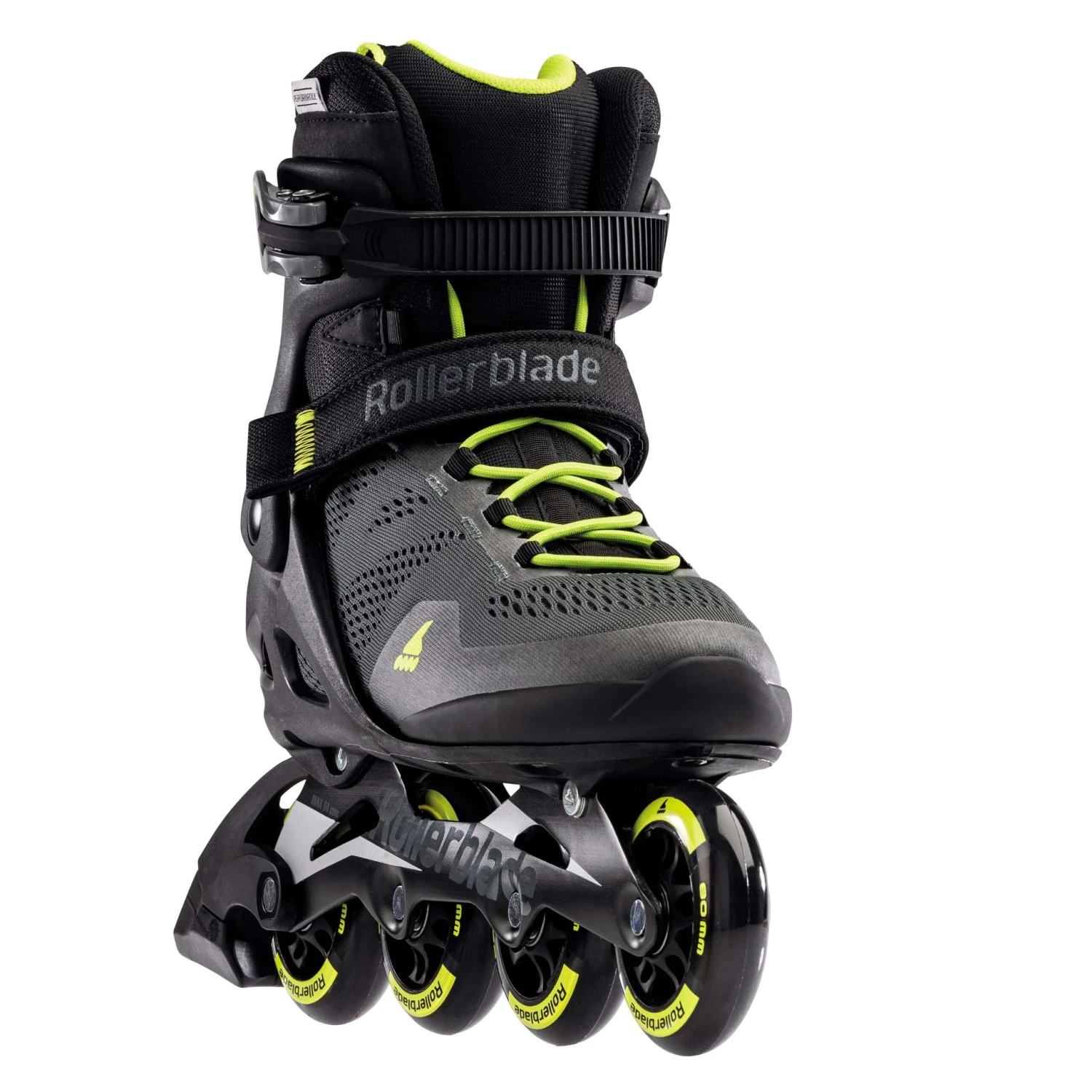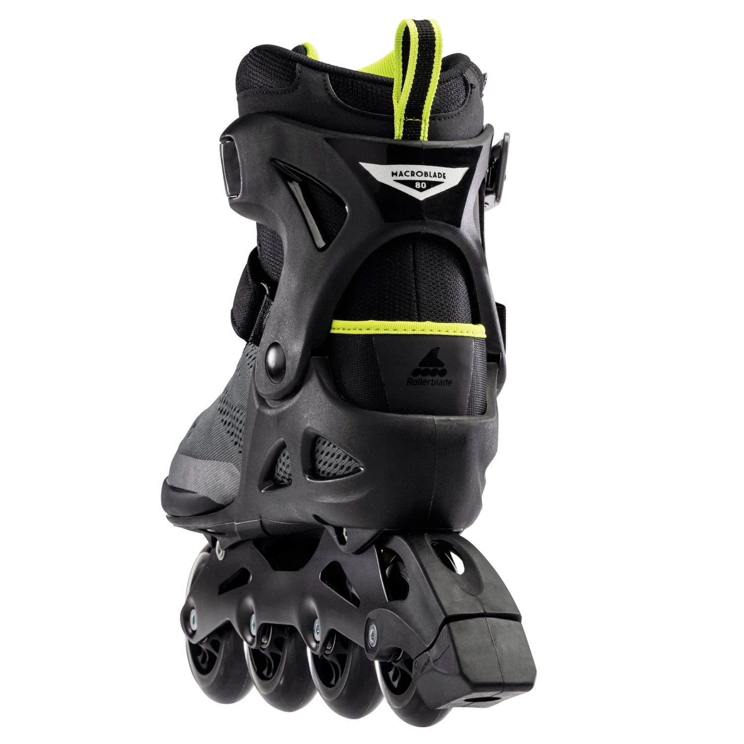 Macroblade 80 is designed for men and ideal for casual skaters looking for an enhanced entry-level skate of higher quality. The secure boot structure, padded liner and an upgraded engineered mesh provide sock-like comfort and lateral support. An aluminum frame improves performance by adding more power transfer and durability. 80mm Performance wheels with SG5 bearings benefit speed as skills advance, upgradable to higher-performance supreme or hydrogen wheels with skater proficiency; brake is standard. Macroblade is an exceptional value for a novice skater.
