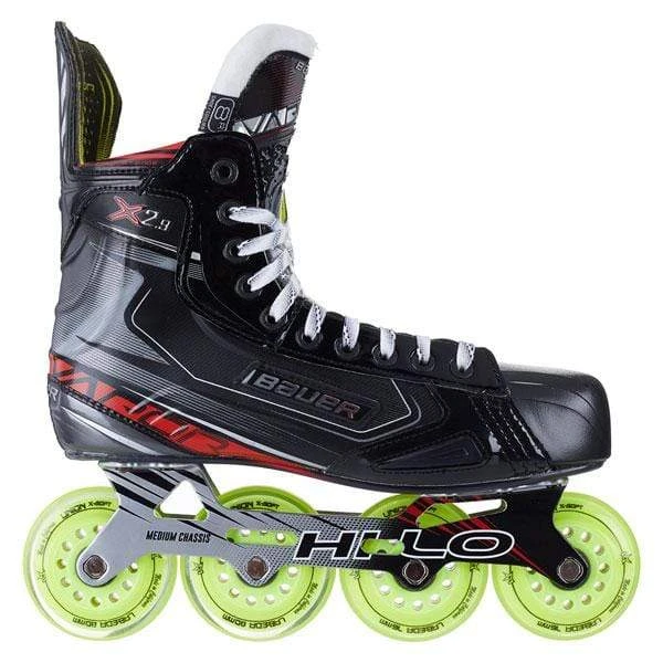 The Bauer Vapor X2.9R Skate boasts high-end performance and comfort at a great price. The pro-level Tech Mesh boot has significant support and stiffness that is usually reserved for top of the line models only. This material also reacts very well to the heat molding process which provides a customized fit with less break-in time. Internally, Bauer made big strides to improve out of the box comfort. underneath the hydrophobic grip liner, the new AeroFoam Ankle Padding makes the skate feel like a dream. The extra thickness and memory foam-like materials instantly contour to the foot, while the liner helps to keep the feet dry and planted all game long. Below the boot, the Vapor X2.9R showcases the signature aluminum Hi-Lo chassis that holds Labeda Union 74A X-Soft Wheels. This combo delivers premium agility, grip and stopping power while the Hi-Lo Abec 9 bearings keep you gliding right past the opposition.