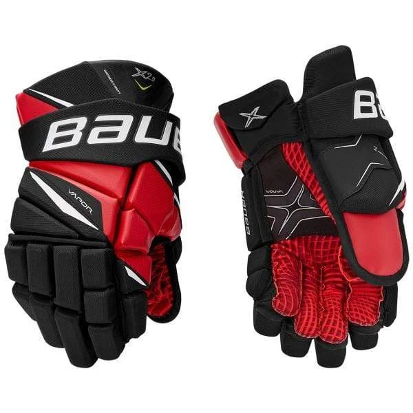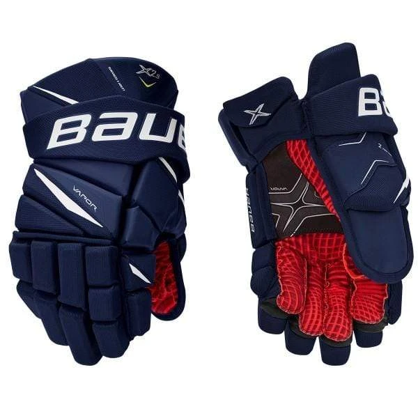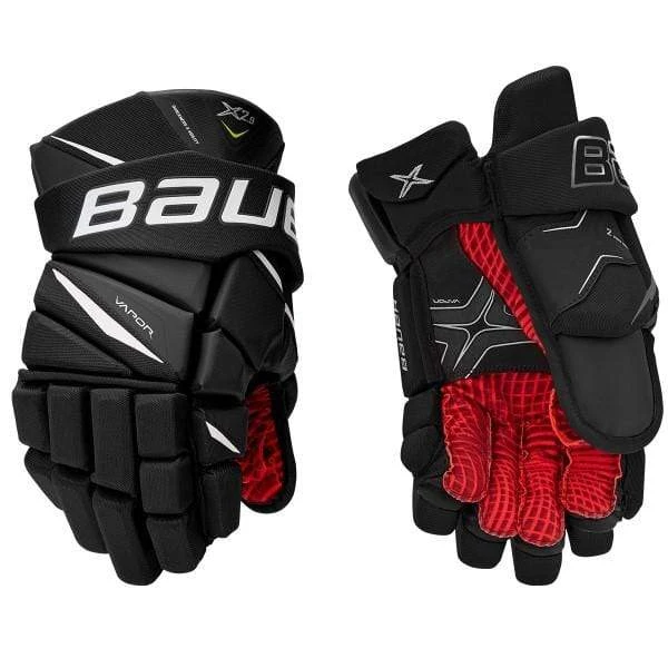 The Bauer Vapor X2.9 Hockey Glove features an all-new Vapor fit that is built with a featherlight protection package. Thick foams reinforced with plastic shield inserts offer affordable protection, even for the competitive hockey player.