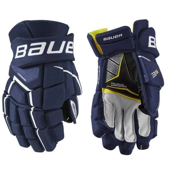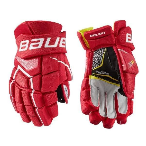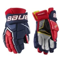 The Bauer Supreme 3S Hockey Glove is a shooter’s dream thanks to the anatomical fit and all-new Shot Boost Fingers. With a three-piece split on the middle and ring finger, the 3S Glove offers a sniper better control over their stick. Offering the competitive player ample protection is thick standard foam with plastic inserts reinforcing the fingers and backhand. This keeps protection lightweight yet remaining protective against slashes or blocked shots. Providing an amazing stick connection is the Connekt Palm, which is constructed with a black microsuede and nash fingertips. In Senior and Intermediate sizes, the palm features a stretch insert at the base of the fingertips to give players a touch more mobility to their game. Internally, Bauer used their Thermo Max liner that excels at keeping the hands cool and dry during the game while offering incredible comfort to the hand.