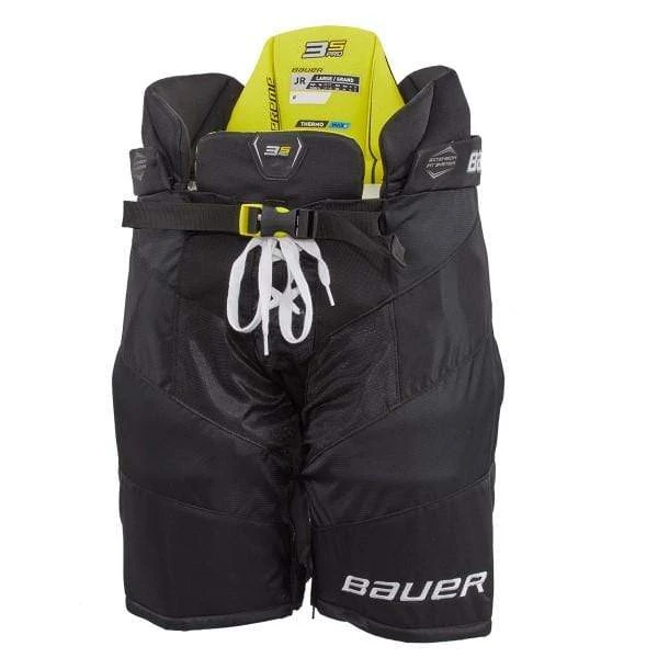 The Bauer Supreme 3S Hockey Pant is built for the competitive player seeking comfort, a classic fit, and affordable protection. Whether a player is digging along the boards or skating through heavy traffic, the 3S Pant offers hard molded plastic and thick standard foam to cover each impact area. With a new Flex Forward design on the kidney guards and a free-moving spine guard, players can get deeper into their stride and turns for more power output while knowing their protection stays where it needs to be. An internal belt adds to that security by keeping the pants locked on the hips during gameplay. Bauer included a 1″ extension system, giving the pants the ability to extend for the quickly growing player or tall/skinny individual. Each leg also features a zippered opening, offering more volume around the thighs for a spacious fit. Internally, players can expect to find Bauer’s Thermo Max liner, which is super soft and comfortable while offering great sweat and moisture management.