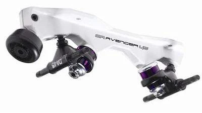 The Avenger plate concept was derived from the 45 degree Magnum and 45 degree Invader skate plates of the late 70’s early 80’s. Over the last few years a lot of emphasis has been placed on strong light weight products for speed and derby. In the 80’s we developed the single action Magnum speed plate for this purpose, produced in both aluminum and magnesium, this plate was very light and very strong. Recently we have seen a greater awareness for this style plate; we saw it fitting to redesign it using modern technology and what we came up with was the Avenger. Using a computer aided design program every inch of this plate was designed for a purpose; specific wall thickness, heights, lengths, angles, and material were all chosen for their unique properties. The avenger will be produced in both aluminum and magnesium and both will come standard with the new DA45 truck. The Avenger aluminum will be painted black and the magnesium plate will be painted white. All the superior track hugging agility you have come to expect from the DA45 action in a new lightweight skate.